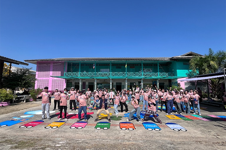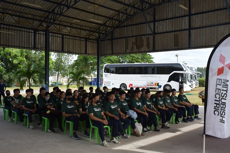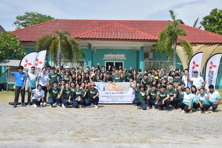 Mitsubishi Electric Consumer Products (Thailand) organized the “Color the Dream with Our Team” CSR activity, in which management members and 54 new employees participated in painting the school building and improving the surrounding landscape at the Mab Pong Child Development Center, Mab Pong Subdistrict, Phan Thong District, Chonburi Province. This activity was carried out to help enhance learning facilities within the communities surrounding the company’s factory area, as well as to support a positive educational environment for the children of the company’s employees who begin their early education at this center.