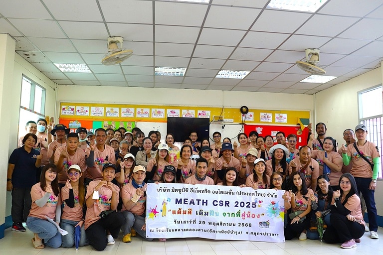 Mitsubishi Electric Automation (Thailand) recognizes the importance of contributing to society and supporting learning opportunities for youth in underprivileged areas. Therefore, the company organized a CSR activity “Coloring Dreams for the Kids” with the participation of 50 employee volunteers. As part of this activity, the company donated essential items to the school and created a BBL (Brain-Based Learning) playground to provide children with an engaging and development-focused play area.
